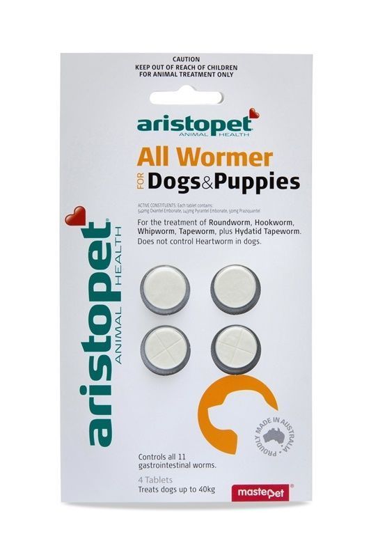Aristopet All Wormer Tablets will treat and control all 11 intestinal worms such as: Roundworm (Toxocara canis, Toxascaris lenina), Hookworm (Ancylostoma caninum, Ancylostoma braziliense, Uncinaria stenocephala), Whipworm (Trichuris vulpis), Tapeworm ( Dipylidium caninum, Taenia ovis, Taenia hydatigena, Taenia pisiformis), plus Hydatid Tapeworm (Echinococcus granulosus).