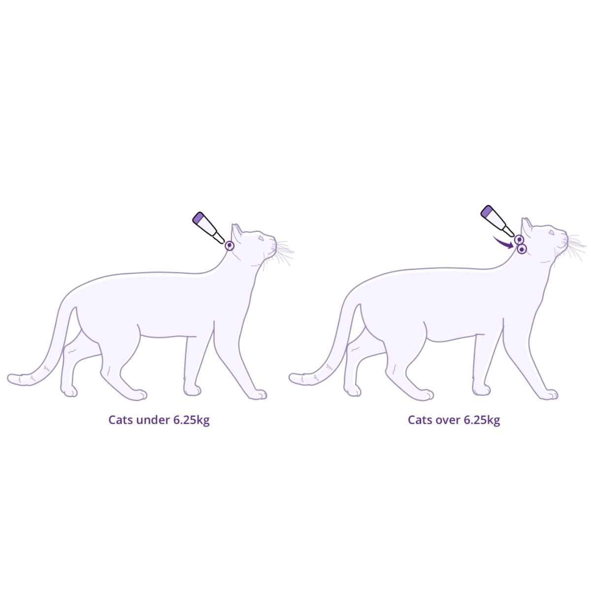 Apply contents of the appropriate tube for your cat’s body weight to the application sites.
