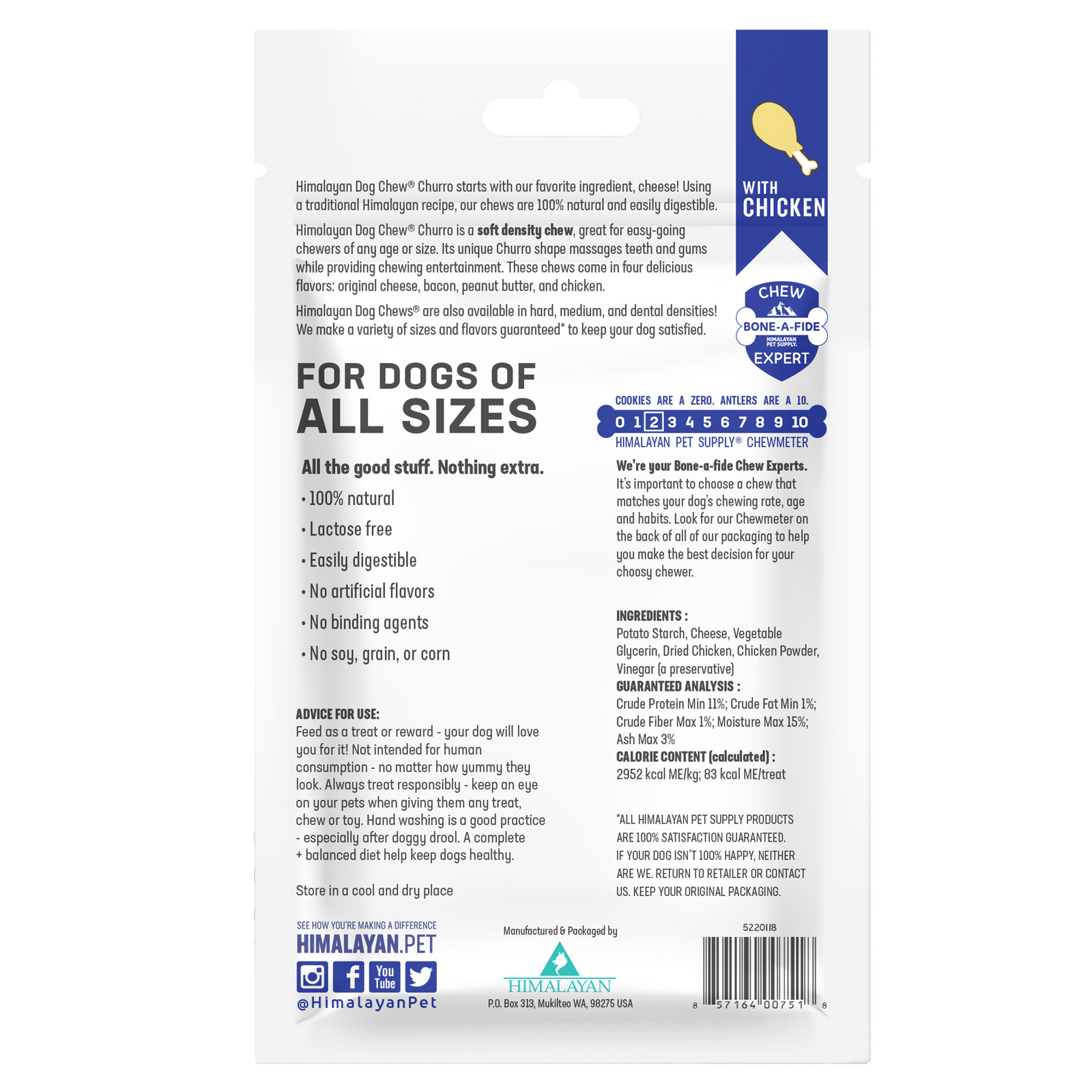 Choose a chew matching your dog’s age and chewing strength — Churro is the softest density option.