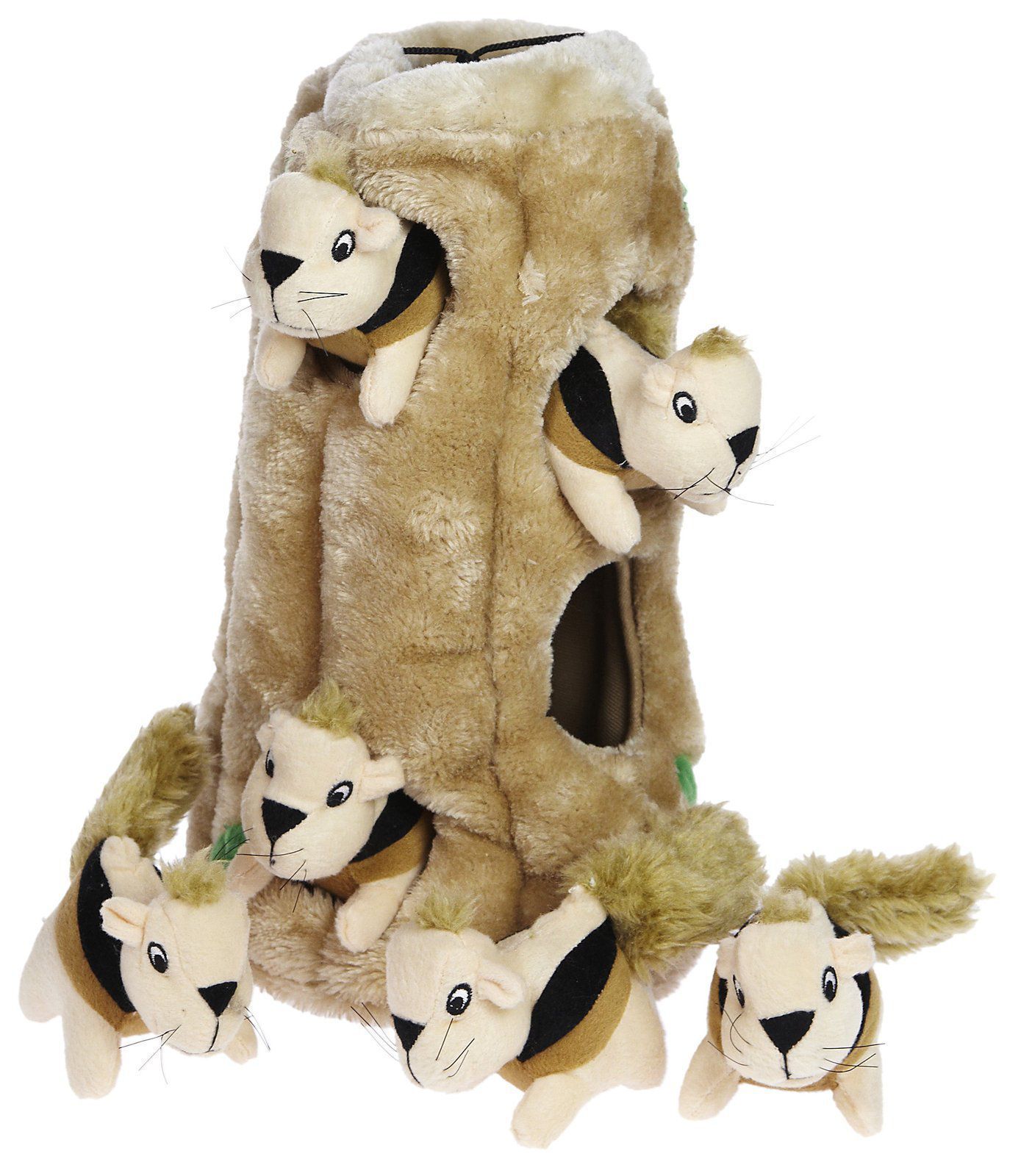 Hide-A-Squirrel introduces an innovative approach to playtime. Hide the squeaky squirrels inside the openings in the tree trunk and watch your pooch find them.