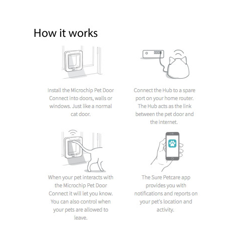 - Connect with the Hub which links the Microchip Pet Door Connect to the Sure Petcare app